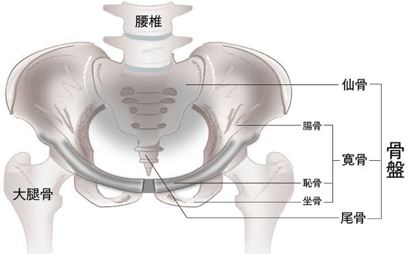 骨盤は、左右の寛骨(腸骨・坐骨・恥骨)と仙骨からできている強固な骨の集合体です。